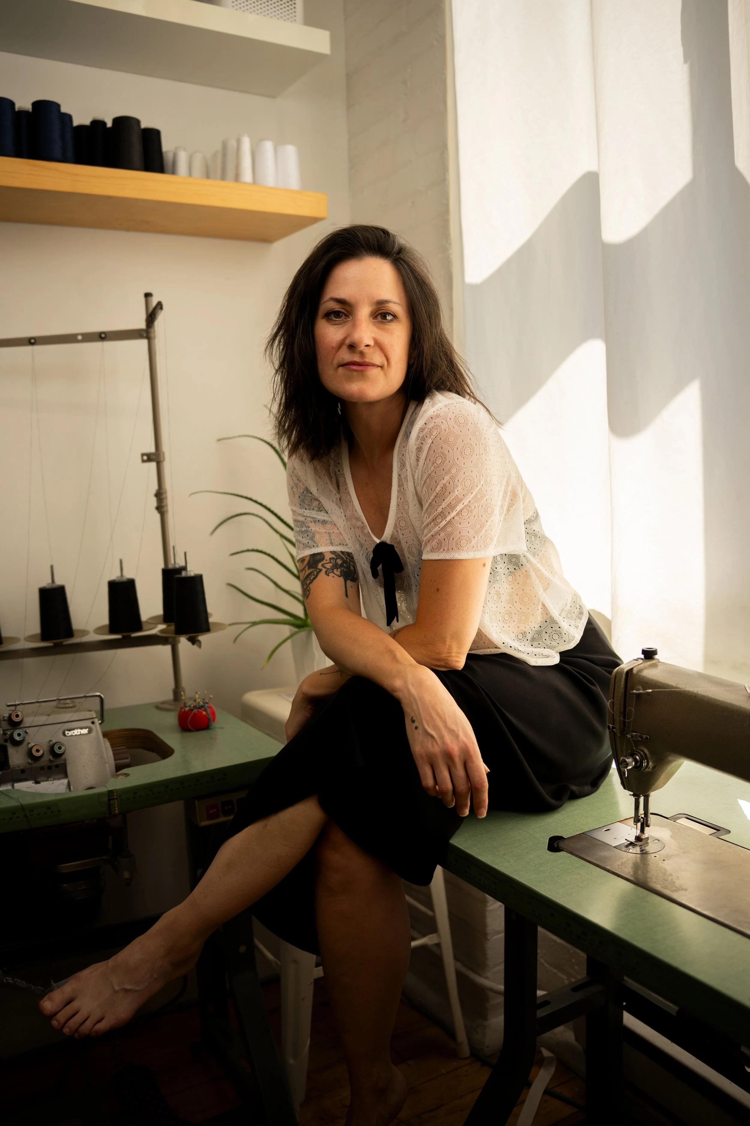 Chez Pascale Viau, du dessin à la finition, en passant par la confection et la coupe, toutes les étapes de production sont faites dans notre atelier de Montréal.